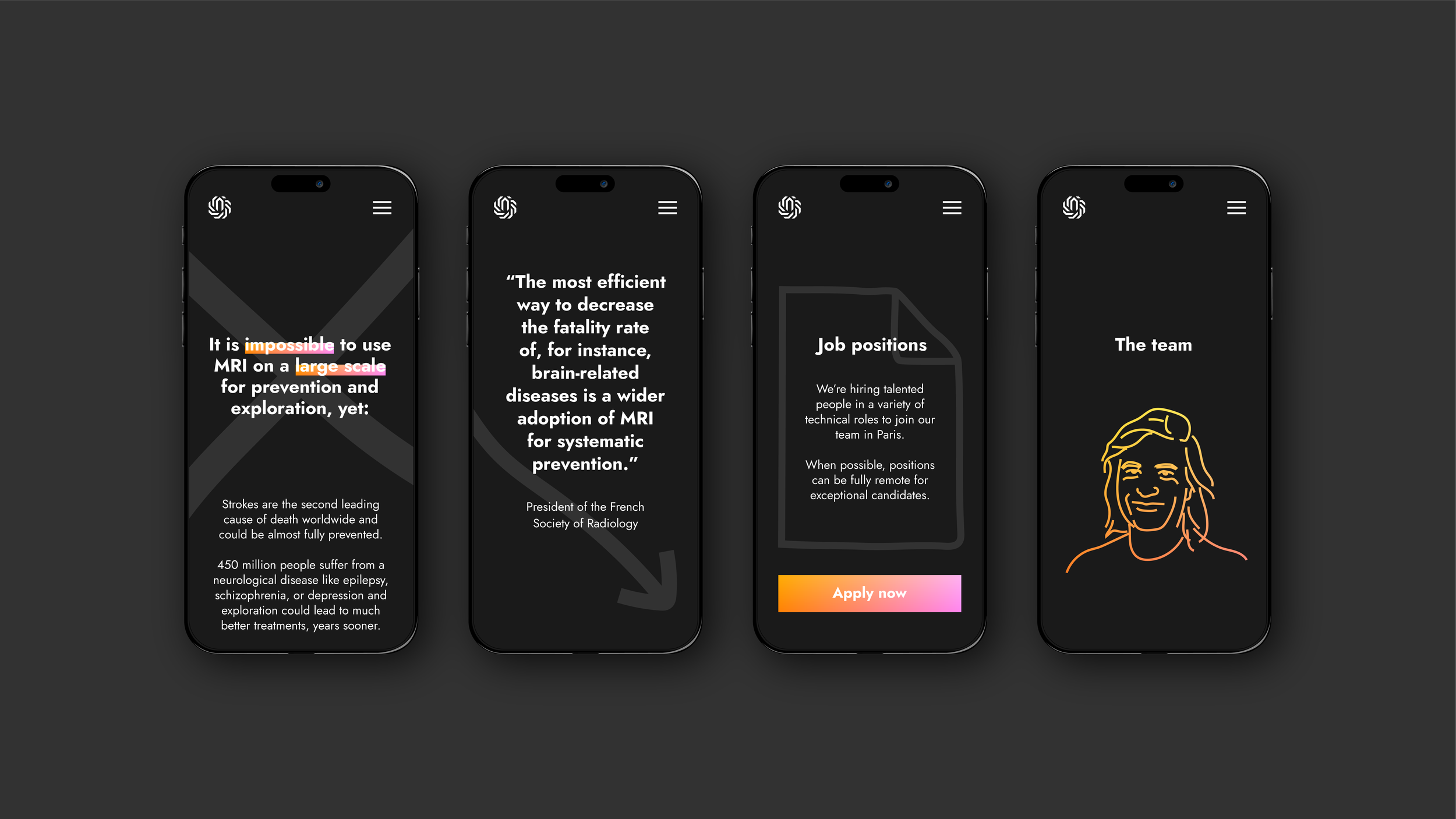Who? Creators of the first light, inexpensive, open full-body MRI machine that doesn’t compromise image quality. Problem? A new startup with zero brand identity. Solution? Working closely with the founders, a dramatic identity was meticulously crafted to embody clarity and precision. Bold, bright colours contrasted with rich black backgrounds emulate the imagery created. An organic illustration style brings the consumer element into focus, combined with a bold typeface to highlight impactful statements around the mission.